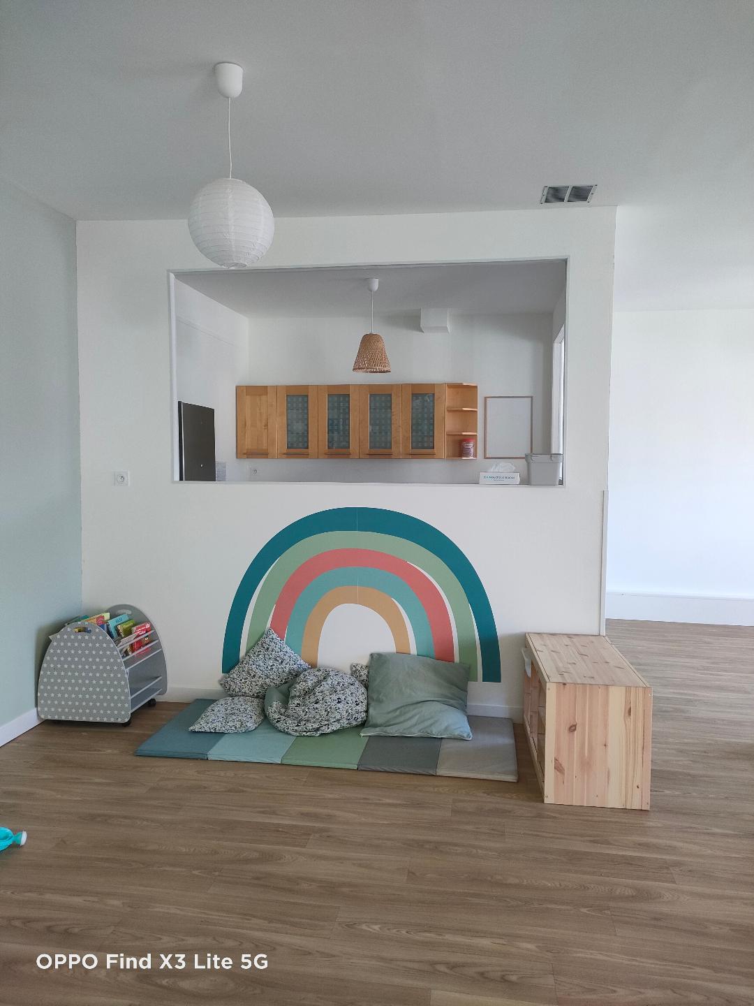 Votre enfant sera accueilli dans un espace soigneusement aménagé pour lui : il pourra explorer seul l’espace, parfaitement sécurisé, dès qu’il sera en mesure de le faire : les meubles seront à sa taille, le matériel ludo-éducatif librement accessible. L’organisation est pensée pour favoriser les interactions entre des enfants d’âges différents et leur socialisation.